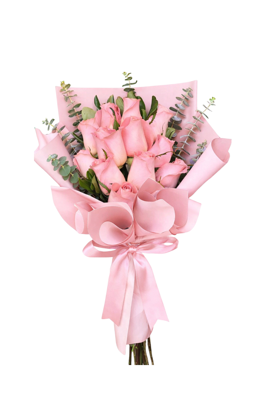 Bouquet de 12 rosas y finos follajes. Decorado con wrapping paper.